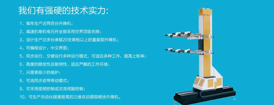 力恒機(jī)電設(shè)備有限公司是一家以生產(chǎn)涂裝設(shè)備為主要業(yè)務(wù)的公司.主營行業(yè):靜電噴粉設(shè)備;熱潔環(huán)保爐;(碳化爐);數(shù)字智能升降機(jī)(往復(fù)機(jī));氟碳噴涂設(shè)備;小旋風(fēng)二級(jí)回收噴房;大旋風(fēng)二級(jí)回收噴房;魔術(shù)快速換色噴房;背包式單極回收噴房;水簾噴漆柜;全自動(dòng)噴粉設(shè)備...
